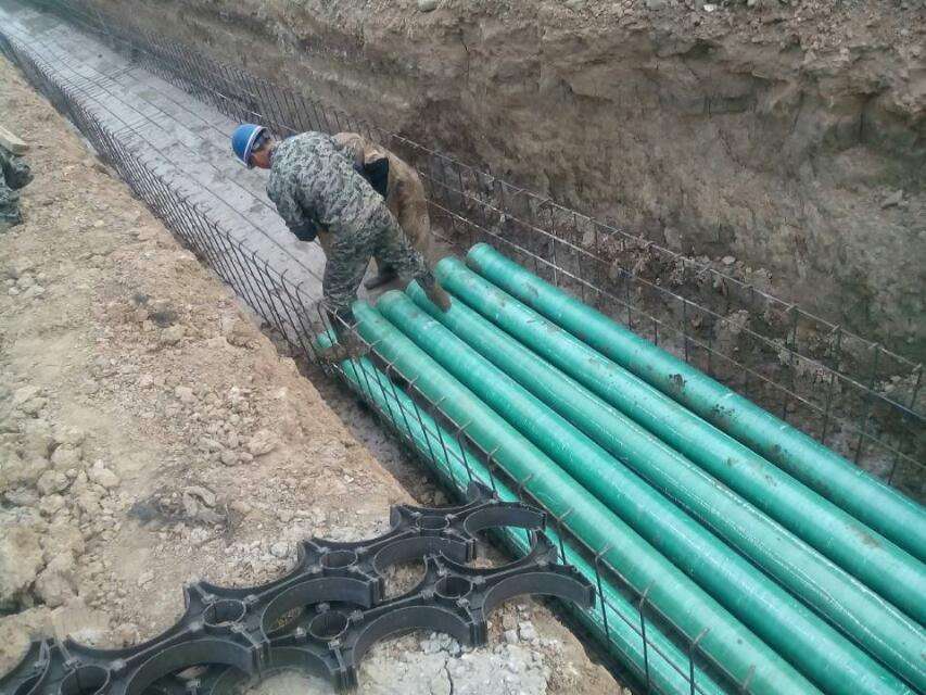 玻璃鋼電纜保護管,是一種新型的復合材料管,它以樹脂為基體和玻璃纖維為增強材料復合而成, 與不飽和樹脂粘結成型并能與現代電纜工程建設相配套的優質電纜保護用導管產品。抗壓力強、重量輕、內壁光滑,摩擦系數小,在穿用電纜時輕松,不損傷電纜。搬、運要比金屬鋼管和水泥管輕松、方便。施工安裝簡便,既省事又省力。耐腐蝕性能強、絕緣、非磁性、耐酸、耐堿、阻燃型、抗靜電。彎曲彈性模量好,完全解決了金屬鋼管易腐爛、無扭曲彈性的特點,同時也克服了塑管易老化、抗沖擊力差的不足。耐水性能好,可在潮濕或水中長期使用不變質。由于玻璃鋼的特定性能,該玻璃鋼管使用壽命在50年以上。施工方便,在搶修特定工程時,效率尤為突出,是電力電纜工程、通信電纜市政工程及道路地下敷設電纜最為理想的保護裝置,電纜過河、過橋使用最為適宜、輕便。