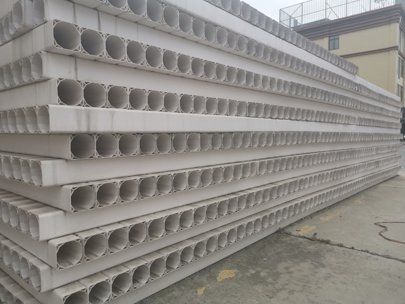 PVC 多孔管屬柔性塑料管, 白色, 材料為硬聚氯乙烯,常用的是七孔梅花管和七孔蜂窩管,其規格型號為 110 32 × 7。 PVC 多孔管采用承插式接口, 使用 PVC膠進行密封防水處理, 具有水密性好