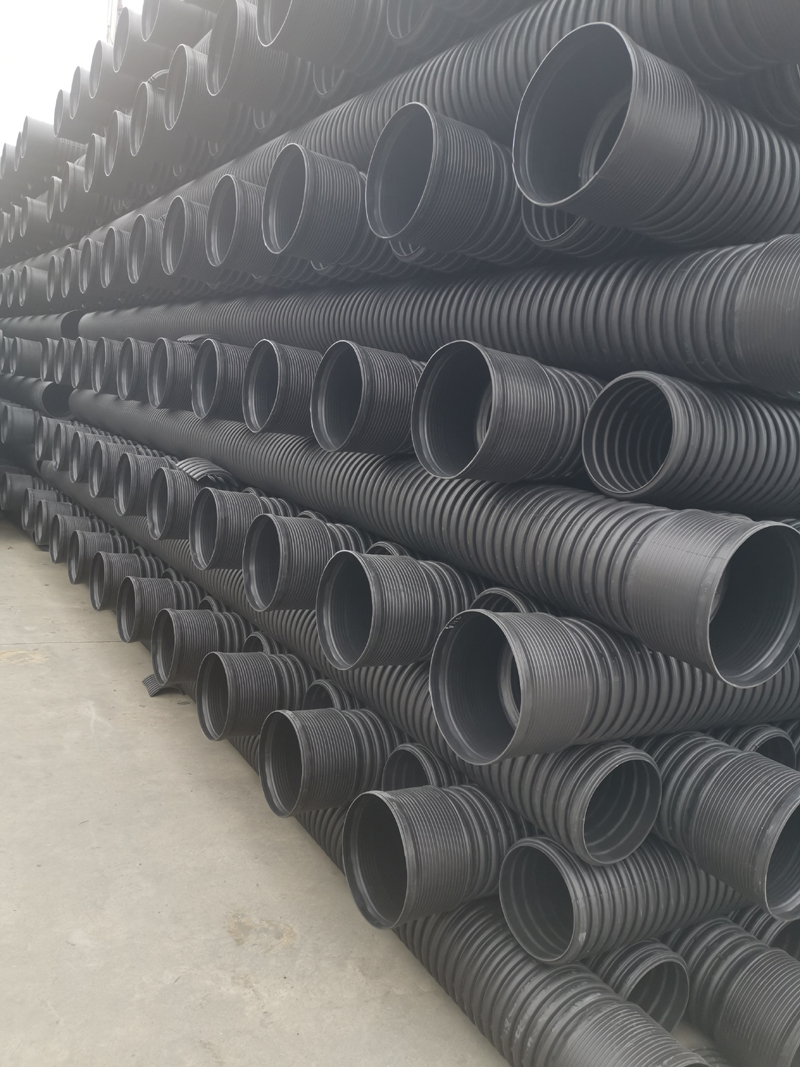 外觀:黑色。執行 GB/T 19472.1-2004《埋地用聚乙烯(PE)結構壁管道系統第一部分:聚乙烯雙壁波紋管管材》。彈性密封符合 HG/T 3091-2000 的要求。規格:內徑:DN200mm,DN300mm,DN400mm,DN500mm,DN600mm,DN800mm,等規格。